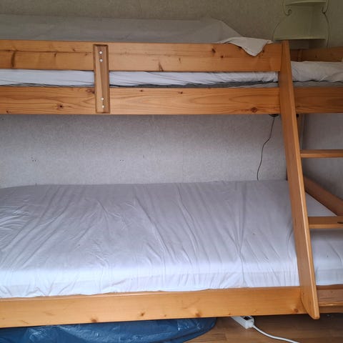 2 st våningssängar 200x90 (160 hög) säljes för 1500:- st (nypris idag 2995:-). Madrasser ingår för den som vill ha men köparen tvättar själv. Köparen tar också isär våningssängen/sängarna vid hämtning. Säljes pga flytt och hämtas lör 6:e juni.