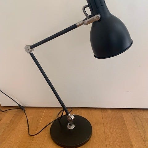 Säljer grå skrivbordslampa i mycket fint skick. Använd men felfri. Pris kan förhandlas vid snabb affär.