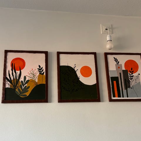 Arcoroc väggdekoration korgar i naturmaterial. Setet består av flera runda korgar i olika storlekar och mönster i natur- och mörka toner. Korgarna kan användas som väggdekoration i exempelvis vardagsrum, hall eller sovrum. De är flätade i naturmaterial och ger en strukturerad yta med varierande mönster och färgkombinationer inom samma färgskala.