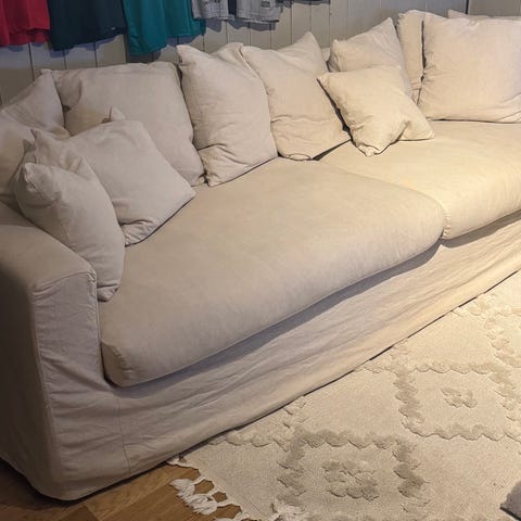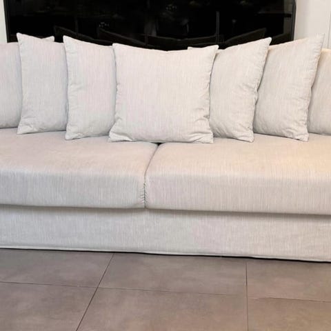Rejäl och gedigen soffa i vitt tyg, från BQ of Sweden