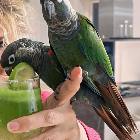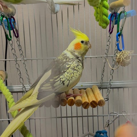 Har försökt ha honom ihop med en annan parakit (plommonguvad, så inte samma art). Men tyvärr gick dom inte att ha i samma bur, vilket dock kan bero på den andra fågeln som var/är livrädd för andra fåglar. Så nu sitter de i varsin bur men bredvid varandra.