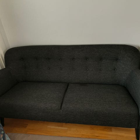 Snygg soffa i grått,hög rygg.