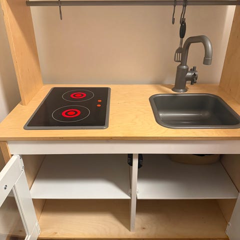 Säljer ett fint och välanvänt barnkök från IKEA (DUKTIG-modellen) i rött, tillsammans med en stor samling tillbehör – perfekt för barn som älskar att leka restaurang, café eller laga mat hemma!