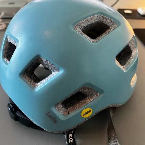 POC Crane cykelhjälm i blå färg. Hjälmen har flera ventilationsöppningar och justerbart spänne under hakan.