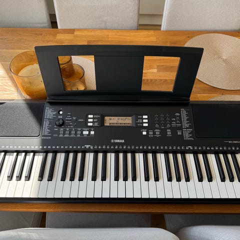 Säljer en Yamaha PSR-E343 i fint skick. Elektroniskt klaviatur med fullstora tangenter och inbyggda funktioner och ljud.