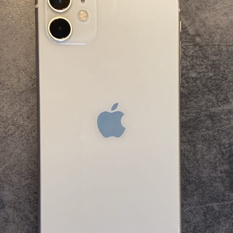 Apple iPhone 11 smartphone med 64 GB lagringsutrymme. Enheten har sprickor i skärmen, men menyer och information visas fortfarande på displayen. Lämplig som reservtelefon, för reparation eller som delar. Stor skärm, dubbelkamera på baksidan och Face ID-stöd enligt standard för iPhone 11-serien.