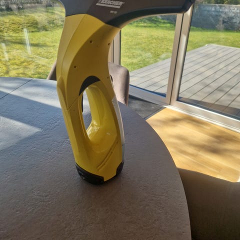 Kärcher fönstertvätt. Batteridriven skrapa för fönster och andra släta ytor. Tillbehör är sprayflaska med mikrofiberduk och laddare. Passar för rengöring av fönster, speglar, duschväggar och liknande glasytor i hemmet. Sparsamt använd.