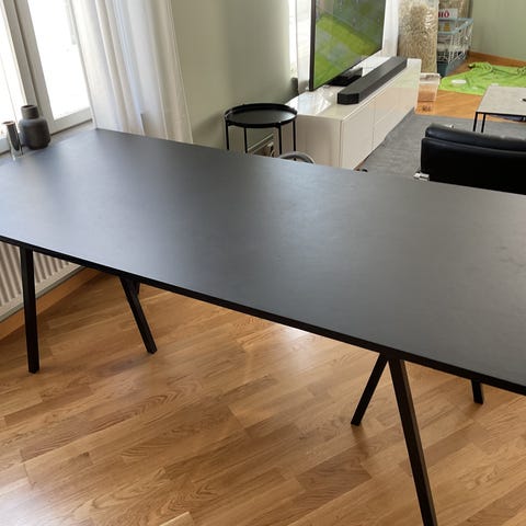 Hay CPH table i svartbetsad ek med skiva klädd med svart linoleum.