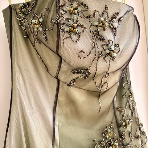 Saknar ett svart sidenband i midjan- om man vill, kan användas utan.