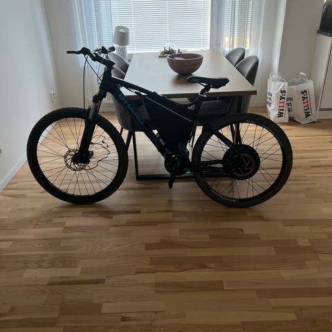 250w motor - TSDZ2B med 36V batteri och kontroll från Varstoms. Den har rullat 122 mil sedan ombyggnation.
