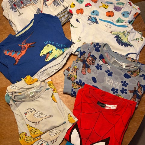 flerfärgade tröjor för pojke i storlek 110- 116. Blandade långärmade och kortärmade tröjor med olika tryck och motiv, bland annat dinosaurier och djur. Passar vardagsbruk för barn i storlek 116. Flera olika färger och mönster i samma storlek. Alla är I jättefint skick, inga fläckar som jag kan se. Finns i Fagersta för avhämtning, kan skickas med postnord spårbart eller blockets fraktskydd, du som köpare avgör själv