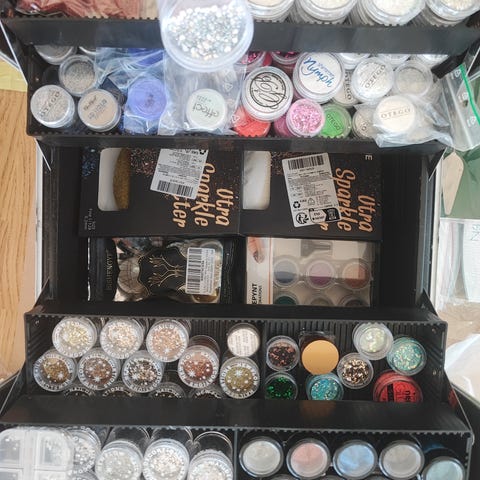 Nagelvård set med UV‑lampa, flera nagellack i olika färger och typer samt nagelvårdsverktyg. I setet ingår bland annat en kompakt UV‑/LED‑lampa för härdning av nagellack, flera flaskor nagellack och gel-lack, nagelfilar, nagelklippare/nagelbandstång samt tillbehör i plastpåse. Lämpligt för hemmabruk för manikyr och nagelvård.