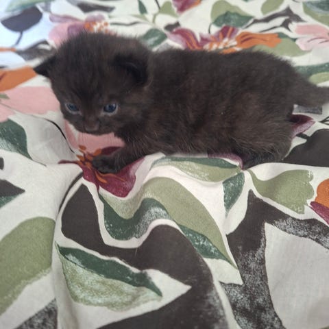 Hjälper mina föräldrar att sälja den sista kattungen i kullen. Det är en hel svart (troligtvis) honan, född 3/2. Kommer bara vara avmaskad när hon säljs.