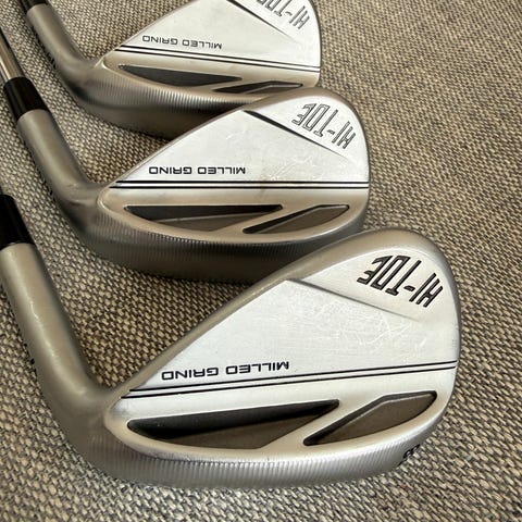 TaylorMade Hi-Toe wedgar med loft 50°, 54° och 58°. Klubborna har stålshaft (KBS Hi-Rev 2.0 120)