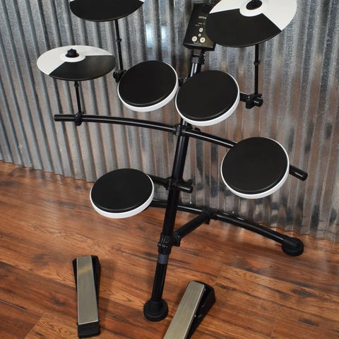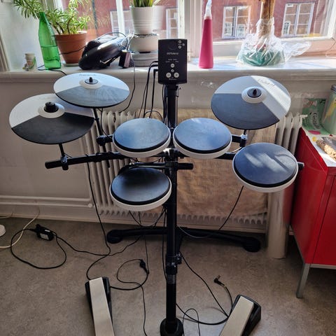 Roland V-Drums elektroniskt trumset med modul TD-4. Medföljer även ett mycket sliten men fungerande trumpall.