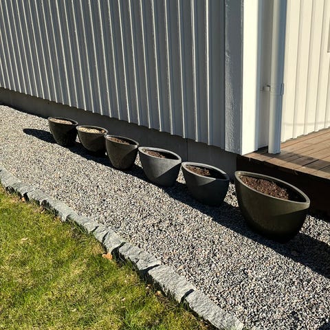 Vi har haft prydnadsgräs i dem. Vilket kan följa med på köpet. (Om du vill)
