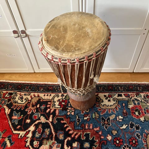 Trumma med natursskinn och klubbor