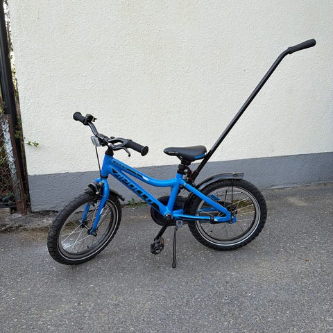 Scott Roxter barncykel i 16 tum med hand-och fotbroms. Toppencykel att lära sig cykla på. Vår son cyklade på denna mellan 4-6 år.