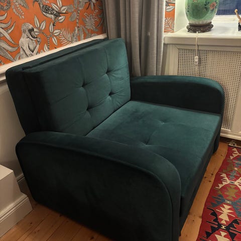 Fin bäddfåtölj som har sparsamt använts som extrasäng både för barn och vuxna. Köpt på Mio ca 2020 och i bra skick!