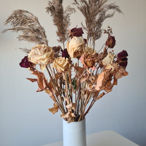 Torkade växter - gula rosor och vassar vass blomsterbukett