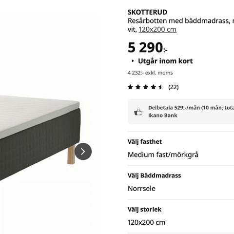 120 x 200 x 70 cm. Kontinental. Köpt på Mio.