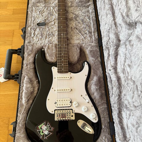 Squire Classic vibe 50´s Stratocaster fiesta red I bra skick. Bakplattan med skruv finns kvar, den är vit precis som originalplekan. Sitter en vit pearloid pickguard på som förra ägaren satt på. Originalplekan finns inte kvar.