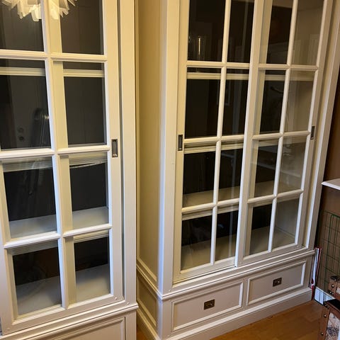 Säljer två triangulära vitrinskåp