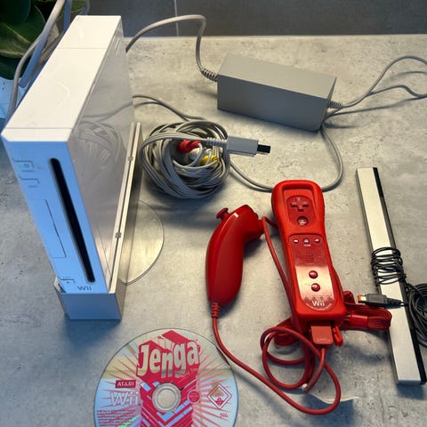 Nintendo Wii-konsol. Inkluderar två Wii-fjärrkontroller, två Nunchuk-kontroller och en Wii Zapper. Följande spel ingår: Call of Duty World at War, Punch-Out!! och Red Steel 2.