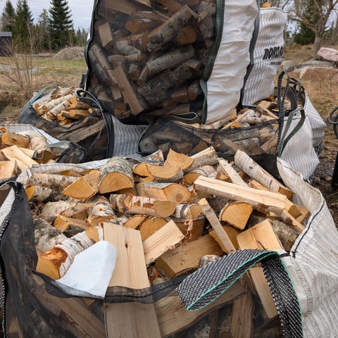 Finns även lite torr björkved kvar i 25 cm längder. Packat i 1,8 m3 säck för 1800 kr/ säck.