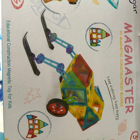 Setet innehåller totalt 31 delar i häftiga neonfärger som är enkla för små händer att bygga med tack vare de starka magneterna. Det är en perfekt kombination av kreativ lek och pedagogisk träning. Kul även för vuxna 😀