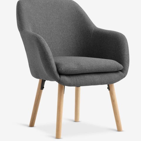Mjuka men distinkta linjer skapar en elegant profil. Fåtöljens fint svängda rygg ger bra stöd till din svank. Och den mörkgrå klädseln ger elegans och stil
