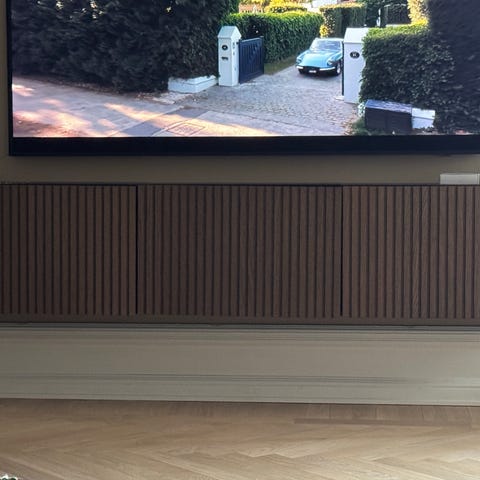 1 st 180x42x38 cm och 1 st 120x42x38 cm. Inga ben till, sitter just nu på väggen. Finns även hyllplan till. Mycket gott skick, som ny! Nypris ca 4000 kr.