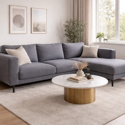 Soffan har inga fläckar men ett litet hål som knappt syns på en av dynorna.