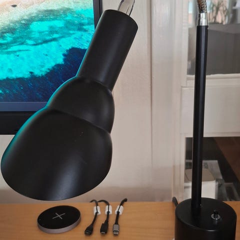 En stilren Vintage Retro justerbar bordslampa från IKEA, modell Kvart. Lampan har en flexibel arm och en riktbar skärm för att ge optimal