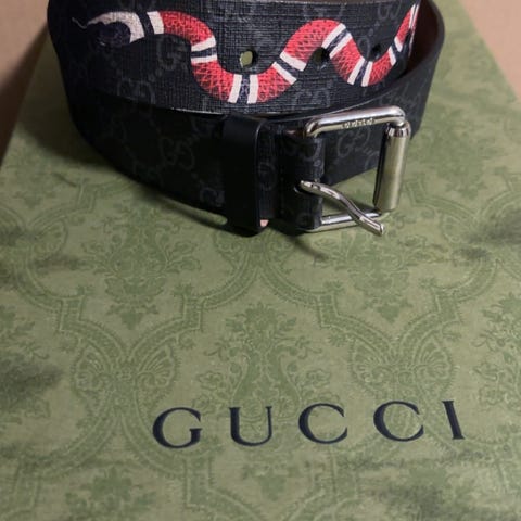 Säljer mitt Guccibälte som är använt 4-5 gånger. Den är köpt i Guccibutik i Köpenhamn. Remlängd 85 cm passar om du har 29-32 i midja på byxor. Länk: https://www.gucci.com/se/en_gb/pr/men/accessories-for-men/belts-for-men/casual-belts-for-men/belt-with-interlocking-g-buckle-p-411924KGDHN9643