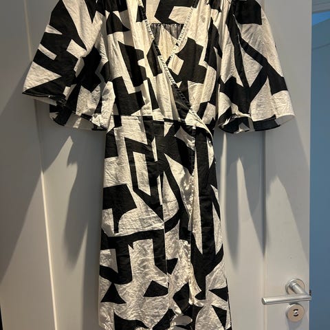 Second Female klänning med sidfickor för dam i storlek M. Klänningen är flerfärgad med mönster och tillverkad i bomull. Passar som vardagsklänning eller festliga tillfällen. Midjebandet ger möjlighet att justera passformen. Ärmarna är något vidare vilket ger en ledig silhuett.