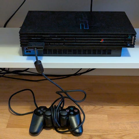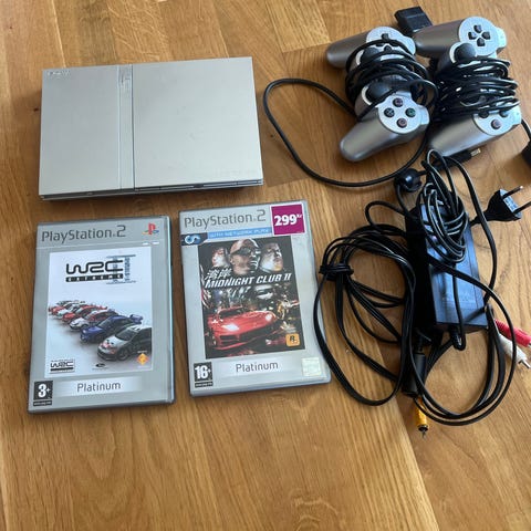 Playstation 2 och kontroller i originalförpackning