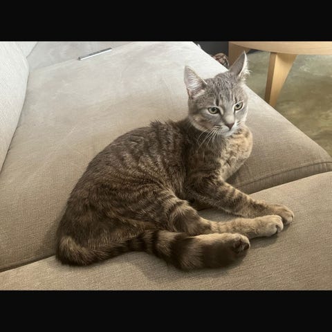 Lovis är snart tre år gammal o är en blandning mellan Maincoon/Norsk skogskatt.