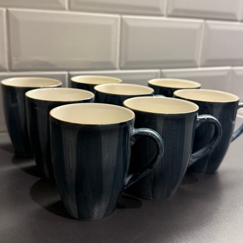 Här säljs delar ur den stilrena Bonna Dusk-servisen i den snygga blå färgen.
