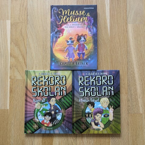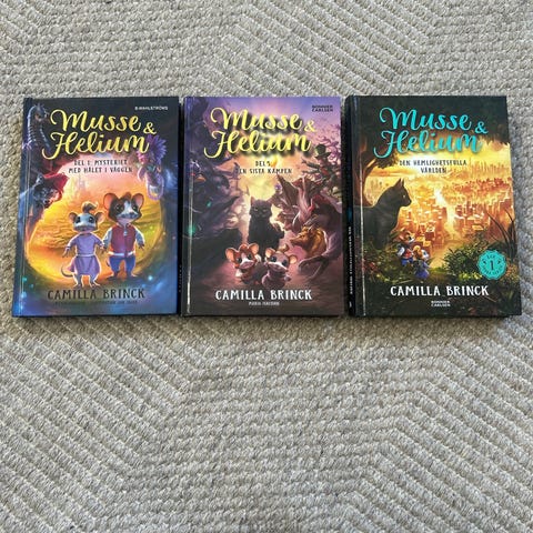 Paketet innehåller en bok om Musse och Helium - Mysteriet med hålet i väggen (del 1) samt ett kortspel Snurrigt med Musse & Helium