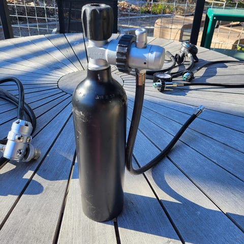 Faber 10 liters 300 bar. Använd 2 ggr sedan provtryckning.