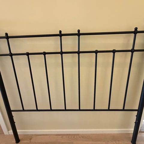 Bågeformad modell med genomsiktligt, nätliknande mönster. Passar till säng med motsvarande 120cm.