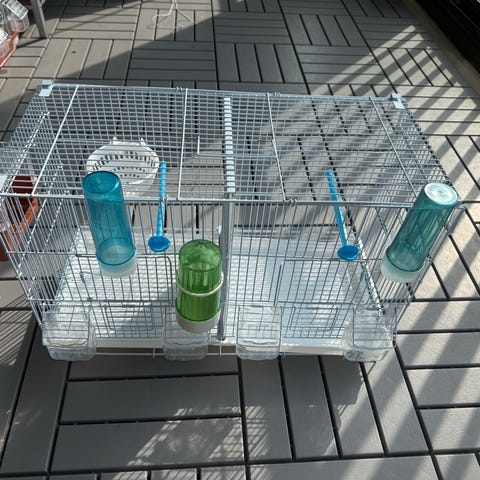 Smådjursbur/ hamsterbur i fint skick, endast använd några månader. Utrustad med hjul för enkel förflyttning och en dörr på sidan för åtkomst. Öppningsbart tak.