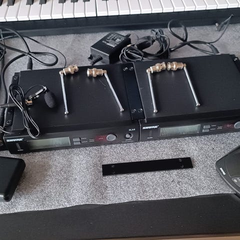 Shure trådlöst mikrofonsystem med handhållen mikrofon och mottagare. Systemet består av en dynamisk mikrofon med metallgaller samt en trådlös sändare och mottagarenhet med indikatorlampor på frontpanelen. Passar för tal, sång och andra ljudupptagningar i exempelvis replokal, scenmiljö eller presentationer där trådlös mikrofon önskas.