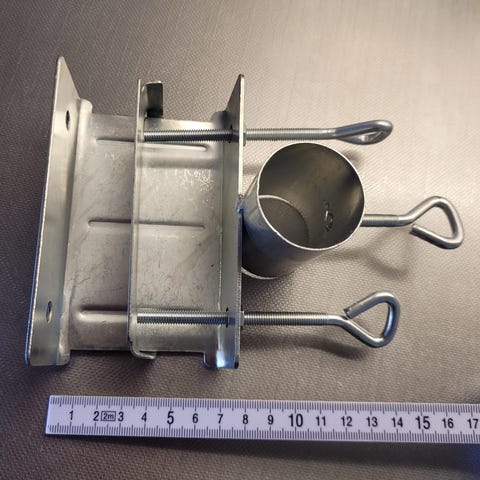 Parasollfäste i metall. Justerbar höjd och fästs med skruv.