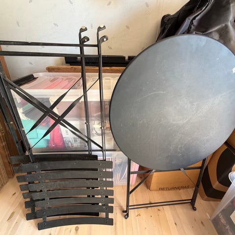 Runt hopfällbart bord metall grå
