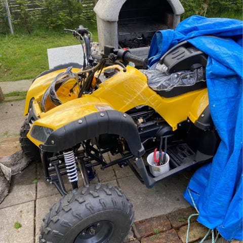 Barn ATV i mindre storlekar. Passar som projekt för den som vill reparera eller bygga ihop dom. Det är en 50cc, en 70cc och en 90cc. Allt säljes tillsammans. Den som köper tar allt. OBS! Säljer inga delar löst. Det som följer med syns på bilderna.