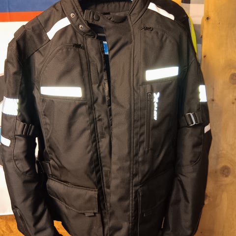 Dainese motorcykeljacka för dam i storlek S. Jackan är svart och tillverkad i Gore-Tex-material, vilket ger vind- och vattentäta egenskaper med andningsförmåga. Modellen har flera ytterfickor framtill, hög krage och justerbart bälte i midjan för bättre passform. Förstärkningar och paneler på axlar och armar är anpassade för motorcykelbruk. Storleksmärkning 48 på insidan. Passar som skyddande ytterplagg vid motorcykelkörning i varierande väderförhållanden.