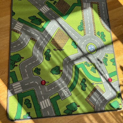 Lekmatta i skum bortskänkes. Delarna är 31,5 x 31,5 cm. Det finns 4 hörnbitar, 19 sid bitar (med 1 kant) och 23 bitar utan kant