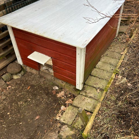 Hönshus i trä och plywood. I använt skick.